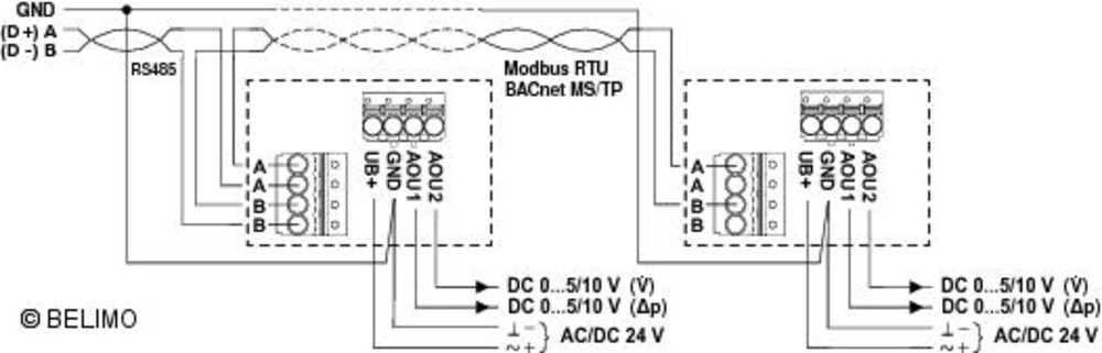 - AC/DC 24 V, Netzwerktechnologie Modbus RTU RS485