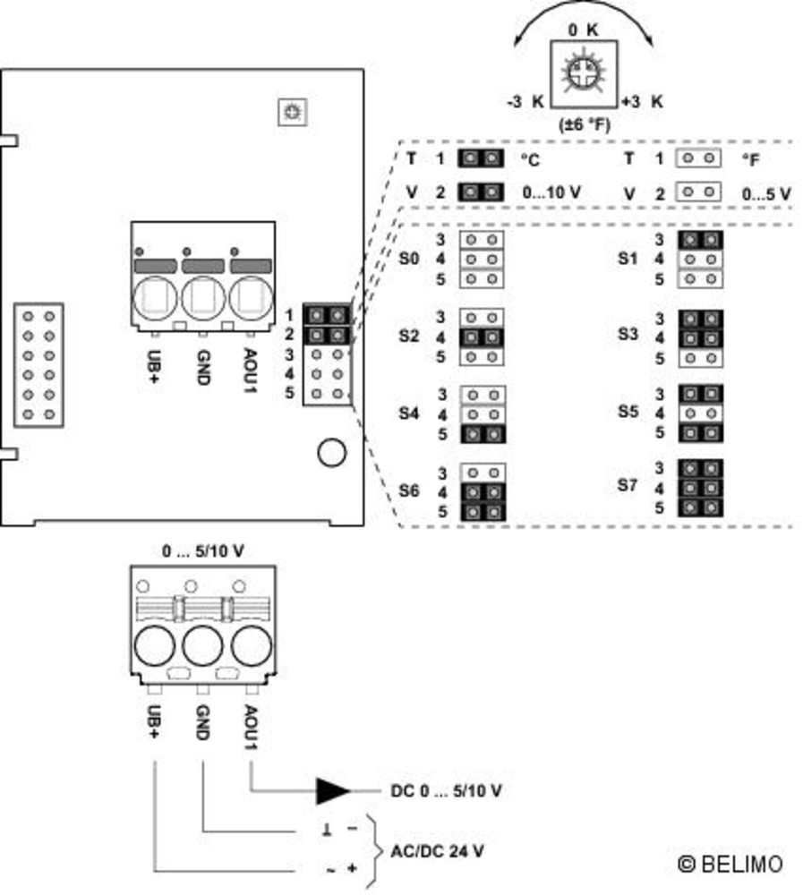 - AC/DC 24 V, Ausgang DC 0...5/10 V einstellbar