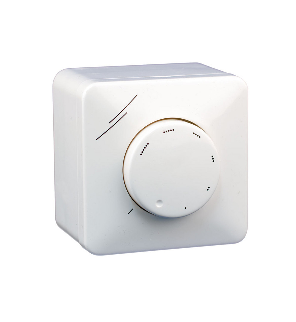 Das Drehzahlpotentiometer verfügt über ein Kombigehäuse und kann daher sowohl auf Putz als auch Unterputz eingebaut werden. Dieser Drehzahlregler eignet sich neben der Ansteuerung von EC-Ventilatoren für alle Anwendungen, in denen ein Sollwert mit einem 10kOhm Potentiometer vorgegeben werden kann.