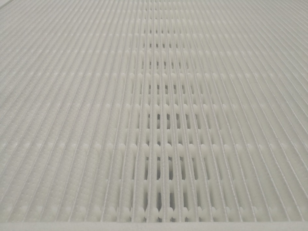 Plissierung entstehenden Falten werden in gleichmäßigen Abständen im INTERMELT-Verfahren fixiert. Der hochwertige Fiberplastrahmen steift den Filter erheblich besser aus, als
