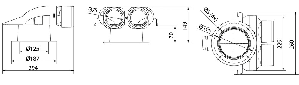 HTH Uniflexplus+ Anschlusskasten 90° AK90S-WD-125 mit KWL-Rohranschluss 2 x NW 75mm