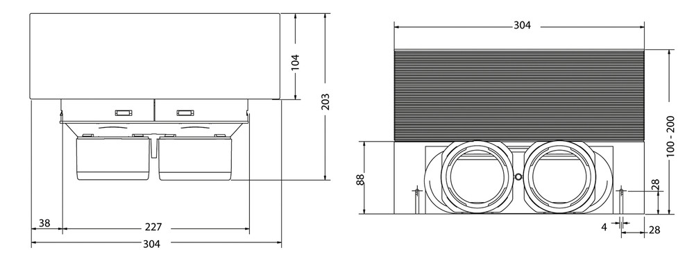 HTH Uniflexplus+ Deckenanschlusskasten 90° AK90L-D-125 mit KWL-Rohranschluss 2 x NW 75mm 11386553 99629