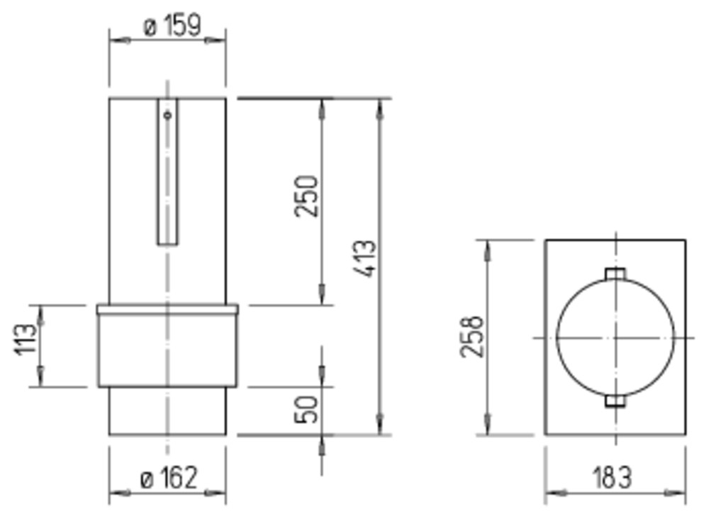 Zweistufige Absperrvorrichtung für senkrechten Einbau gegen Brandübertragung auf andere Geschosse, entspr. DIN 18017. Kompaktes Gehäuse aus verzinktem Stahlblech mit integrierter Deckendurchführung , beidseitig Rohranschlussstutzen nach DIN 24145/24147. Wartungsfrei. Feuerwiderstandsklasse K 90-18017, Zulassungs-Nr. Z-41.3-368.