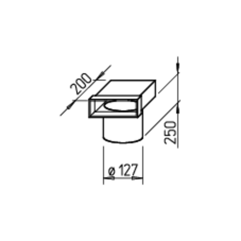 Helios FK-EV 150/125, Flachkanal Endstück 150 x 50 mm, 90 Grad Anschluss für Tellerventile DN 125 mm