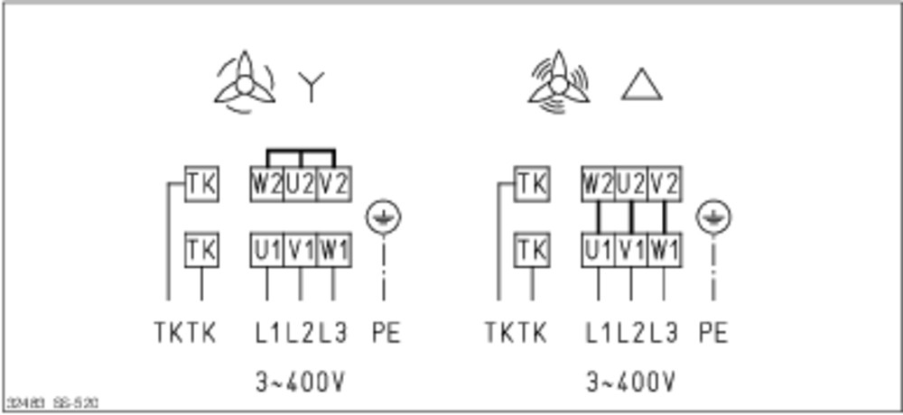 Axial-Hochleistungsventilator Rohrhülse zylindrisch, beidseitige Flansche, direkt angetrieben.Zylindrisches Rohr aus verzinktem Stahlblech, mit Laufrad umschließend, beidseitig angeformtem Flansch, Lochbild nach DIN 24155. Mit außenliegendem Klemmenkasten.Laufrad mit profilierten Schaufeln aus Kunststoff, Nabe aus verzinktem Stahlblech, Flügelanstellung im Stillstand von außen stufenlos verstellbar, mit hohem Wirkungsgrad, Auswuchtgüte G 6.3 nach VDI 2060.Drehstrom-Kurzschlußläufer-Motor zweitourig mit Stern-Dreieck-Schaltung, geschlossene Bauweise, wartungsfrei, gedichtete, geräuscharme Kugellager mit Langzeitschmierung.