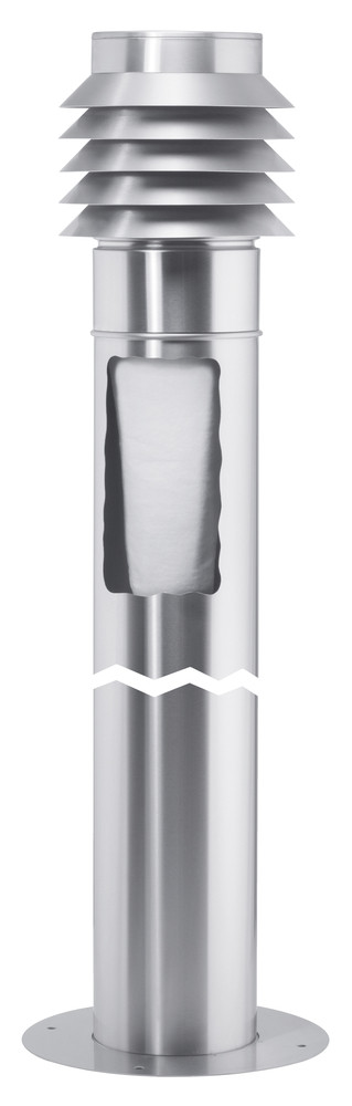 Außenluft-Ansaugsäule mit Kegelfilter der Klasse G3 verhindert das Eindringen von Kleintieren, Insekten und Verunreinigungen. Die Verbindung zwischen Ansaugsäule und Erdkollektorrohr erfolgt durch einfaches Aufstecken. Befestigung mittels Trageplatte aus Beton mit Bewehrungseinlage oder Betonsockel vor Ort. Alle Teile aus rostfreiem Edelstahl.