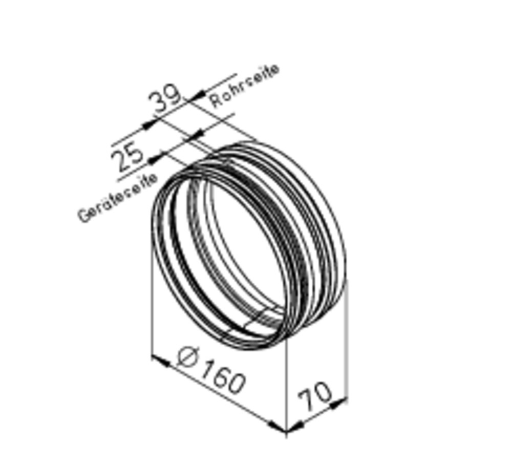 Rohr-Verbinder mit Dichtung für Geräteanschluss an Rohrsystem mit Durchmesser 160 mm.