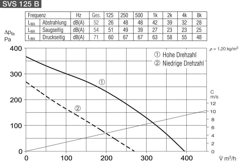 Flach Radialrohrventilator in schallgedämpfter Ausführung SlimVent SVS 125, mit 2 Leistungsstufen 395/270 m³/h Volumenstrom. Geeignet zur Lüftung von Feuchträumen, Toiletten, u.a.m. in Industrie, Gewerbe und Wohnbereich.Gehäuse in längerer Bauform aus verzinktem Stahlblech mit schalldämmender, über 50 mm starker Mineralwolle-Auskleidung. Serienmäßige Lieferung saug- und druckseitig mit Anschlussstutzen und Lippendichtung für Normrohr-Durchmesser. Motor-Laufrad-Einheit ausschwenkbar zur Reinigung und Revision.Laufrad: Energiesparendes Radiallaufrad mit rückwärts gekrümmten Schaufeln aus hochwertigem Kunststoff. Für geräuscharmen Lauf dynamisch gewuchtet.Antrieb: Wartungsfreier, geschlossener, kugelgelagetrer Energiesparmotor mit thermischen Überlastungsschutz in der Wicklung. Steuerung: mittels elektronischen Drehzahlsteller ESU1/ESA1 (Art.Nr.: 0236/0238) oder Trafo-Drehzahlsteller TSW 0,3 (Art.Nr.: 3608) oder 2-Stufenbetrieb mit DS 2/2 (Art.Nr.: 1267). Elektrischer Anschluss über außen am Gehäuse liegender Klemmenkasten (IP55)