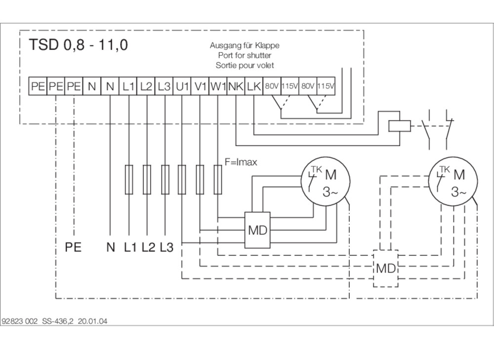 Zur Drehzahlsteuerung von einem oder mehreren Drehstromventilatoren mittels Spannungsreduzierung. Schaltbare Spannungen 0/80/140/200/280/400 Volt. Gehäuse IP 54. 50/60 Hz.