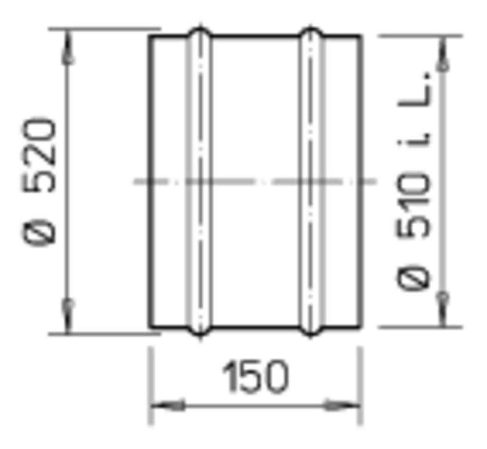 Zylindrisches Rohrstück, Stahl verzinkt, 15 cm lang. Passend zu Ventilatoren der Baureihe HS.