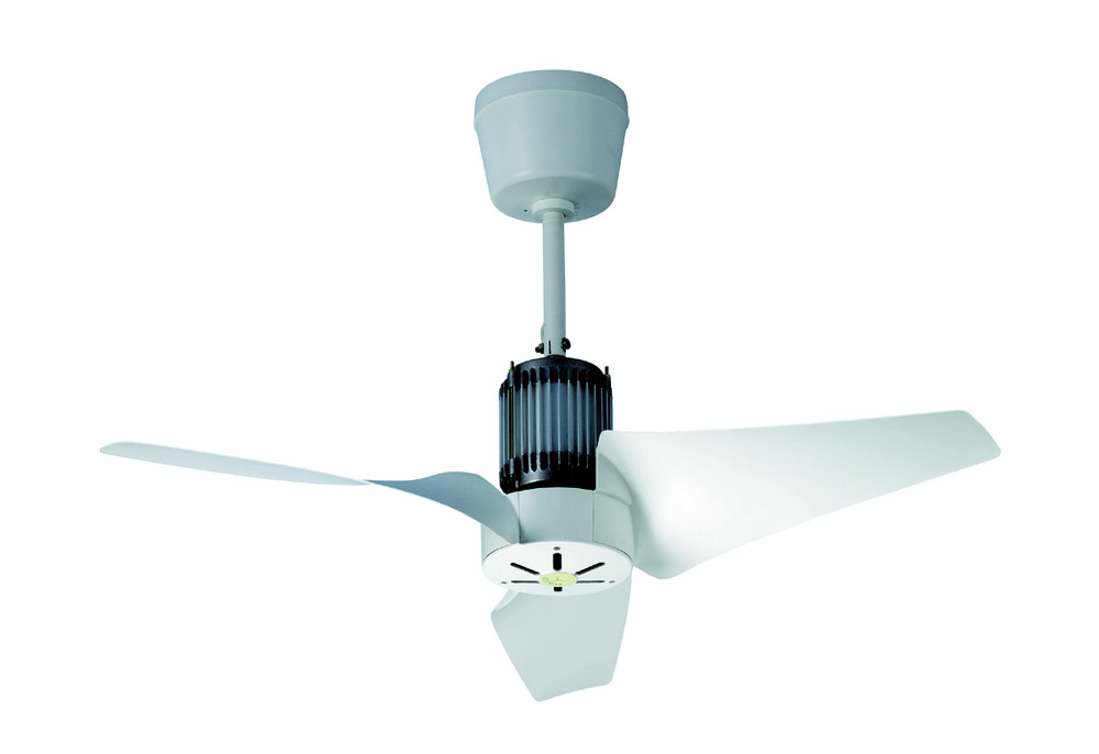 Merkmale EC 90 B, EC 140 B: Für Deckenmontage. Mindest-Montagehöhe = 2,3 m (Abstand zwischen Unterkante Flügelrad und Fußboden). Ohne Schutzkorb. Durch Luftumwälzung bessere Wärmenutzung im Winter, angenehme Kühlung im Sommer. Dadurch in hohen Hallen bis zu 4 K Temperaturerhöhung im Bodenbereich. Durch Luftumwälzung gleichmäßige Temperaturverteilung. Luftrichtung von oben nach unten. EC 90 B: Ausführung mit mittlerer Luftumwälzung. Mit 3-blättrigem Kunststoffflügelrad. EC 140 B: Ausführung mit großer Luftumwälzung. Mit 3-blättrigem Aluminiumflügelrad. Motor: Asynchronmotor. Thermischer Überlastungsschutz serienmäßig. Montagehinweise: Montage der Einzelkomponenten vor Ort notwendig. Befestigungshaken bauseits beistellen. Elektrischer Anschluss: An Klemmleisten im Anschlussraum des Baldachins.Artikel: EC 90 B, Luftumwälzung: 11000 m3/h, Drehzahl: 360 1/min, Flügelraddurchmesser: 900 mm, Laufradtyp: axial, Drehzahlsteuerbar: ja, Reversierbarkeit: nein, Spannungsart: Wechselstrom, Bemessungsspannung: 230 V, Netzfrequenz: 50 Hz, Leistungsaufnahme: 116 W, IMax: 0,55 A, Schutzart: IP 20, Einbauort: Decke, Einbaulage: senkrecht, Material: Kunststoff, Farbe: ähnlich verkehrsweiß RAL 9016, Gewicht: 5,3 kg, Schwenkbar: nein, Breite: 445 mm, Höhe: 240 mm, Tiefe: 345 mm, A: 900 mm, B: 450 mm, Fördermitteltemperatur bei Nennstrom: 55 °C, Fördermitteltemperatur bei IMax: 40 °C, Umgebungstemperatur: 55 °C, Ausführung: Decke, Durchmesser Gebläserad: 900 mm