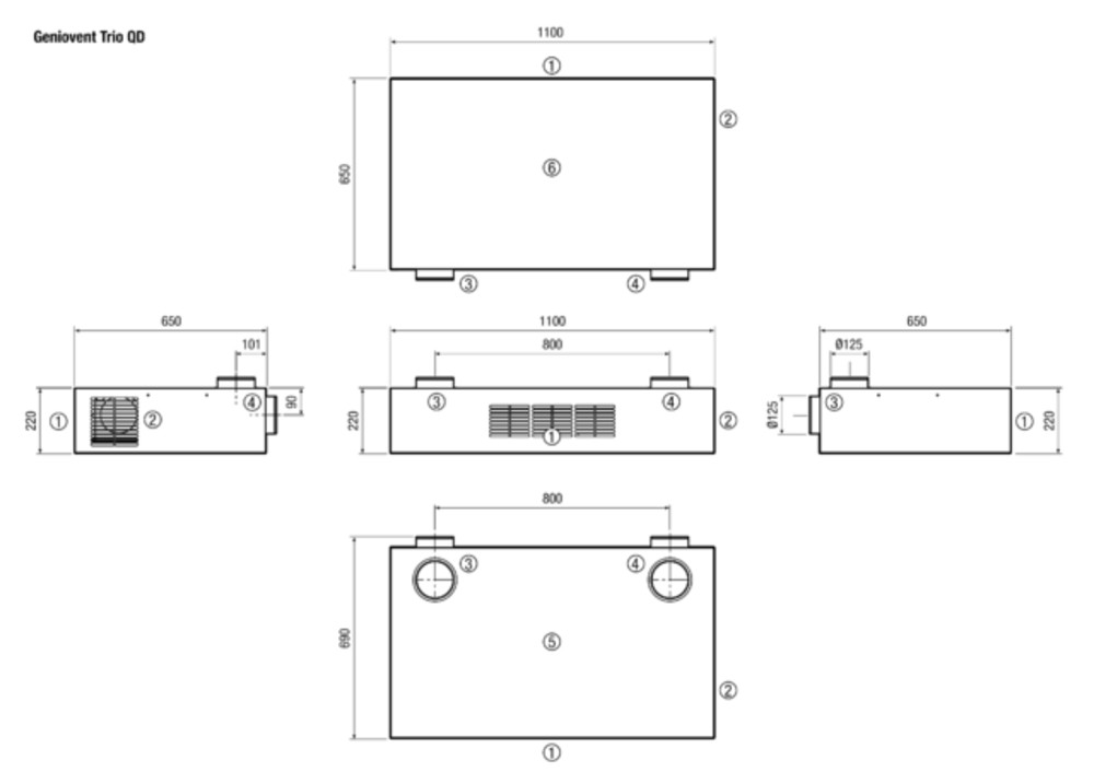 Maico Dezentrales Gerät mit WRG Trio QD-AR, querdurchströmt, ABL rechts