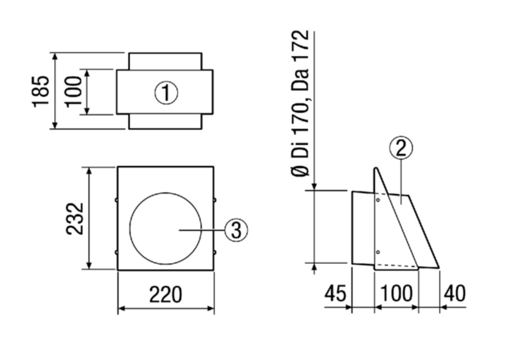 Die formschönen Fortluft-Wandstutzen aus Edelstahl werden an der Außenwand eines Gebäudes befestigt und sind für den Fortluftausblas bestimmt. Die Fortluft wird nach vorne ausgeblasen. Im Lieferumfang ist eine Fortlufthaube mit Kondensat-Abtropfkante und Vogelschutzgitter enthalten.Artikel: KW-FL 16E, Luftrichtung: Entlüftung, Einbauort: Außenwand, Material: Edelstahl (V2A), Farbe: Edelstahl, gebürstet, Gewicht: 1,5 kg, Nennweite: 160 mm, Breite: 220 mm, Höhe: 232 mm, Tiefe: 100 mm, A: 232 mm, B: 220 mm, Geeignet für Boxlüfter: nein, Geeignet für Dachlüfter: nein, Geeignet für Rohrlüfter: nein, Geeignet für Wärmerückgewinnungsanlagen: ja, Geeignet für Wandaufbaulüfter: nein, Geeignet für Wandeinbaulüfter: nein, Geeignet für Wohnhauslüfter: ja, Geeignet für Zentrifugallüfter: nein, Geeignet für Zirkulationslüfter: nein