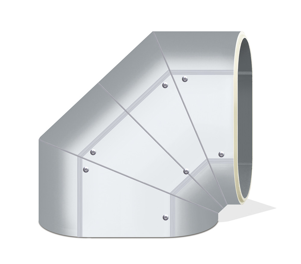 Ventaflex PUR-Hartschaum Bogen 45° horizontal oval 520x1020, glatte Innenbeschichtung, grau 11388219 99795