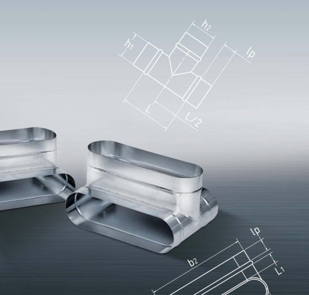 m+a Abzweig ATVO oval, vertikal, b1xh1=260x50mm, für Abzweig b2xh2=195x50mm, Einbaulänge=150mm 11392579 99542