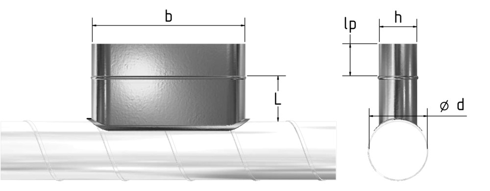 m+a Anschlussstutzen ASTSO oval, symmetrisch, BxH=310x150mm, für Durchmesser=150-500mm 11391145 99542