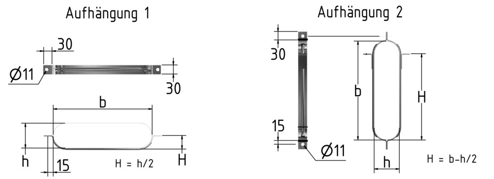 m+a Ovalschelle OS, Aufhängung horizontal, BxH=310x150mm 11397730 99542