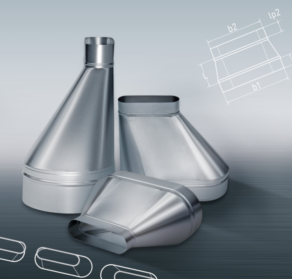 m+a Reduzierung UAO oval-oval, asym., unten gerade, b1xh1=830x500 auf b2xh2=1020x450mm, L=225mm