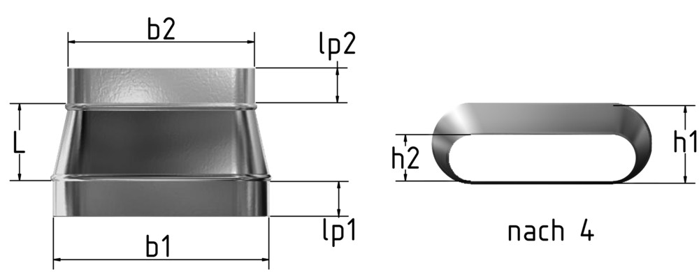 m+a Reduzierung UAO oval-oval, asym., links unten gerade, b1xh1=310x150 auf b2xh2=400x80mm, L=150mm 11393891 99542